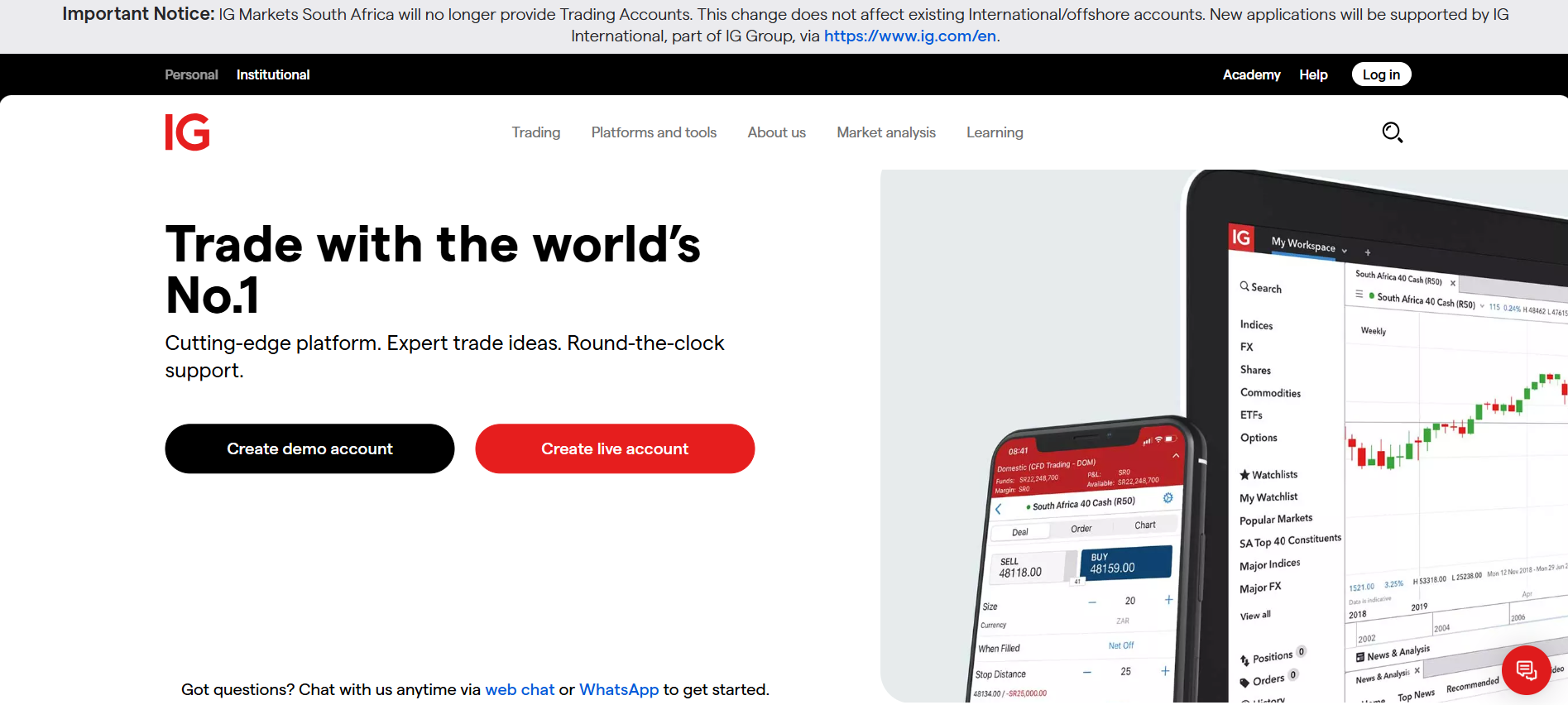 | Trading Platform | MetaTrader 4 (MT 4) IG Platform |