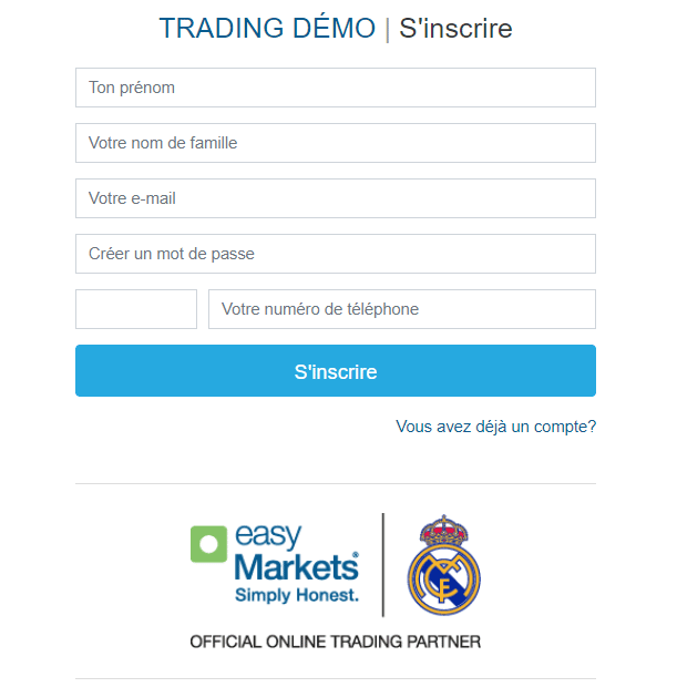 Compte de démonstration EasyMarkets