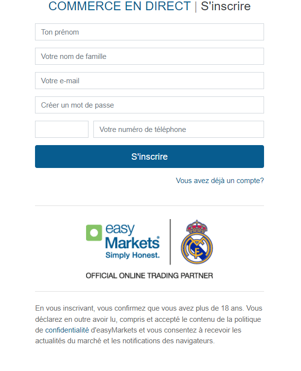Pour commencer le processus d’inscription, le demandeur peut simplement cliquer sur le bouton vert d’inscription situé dans le coin supérieur droit de la page Web EasyMarkets.