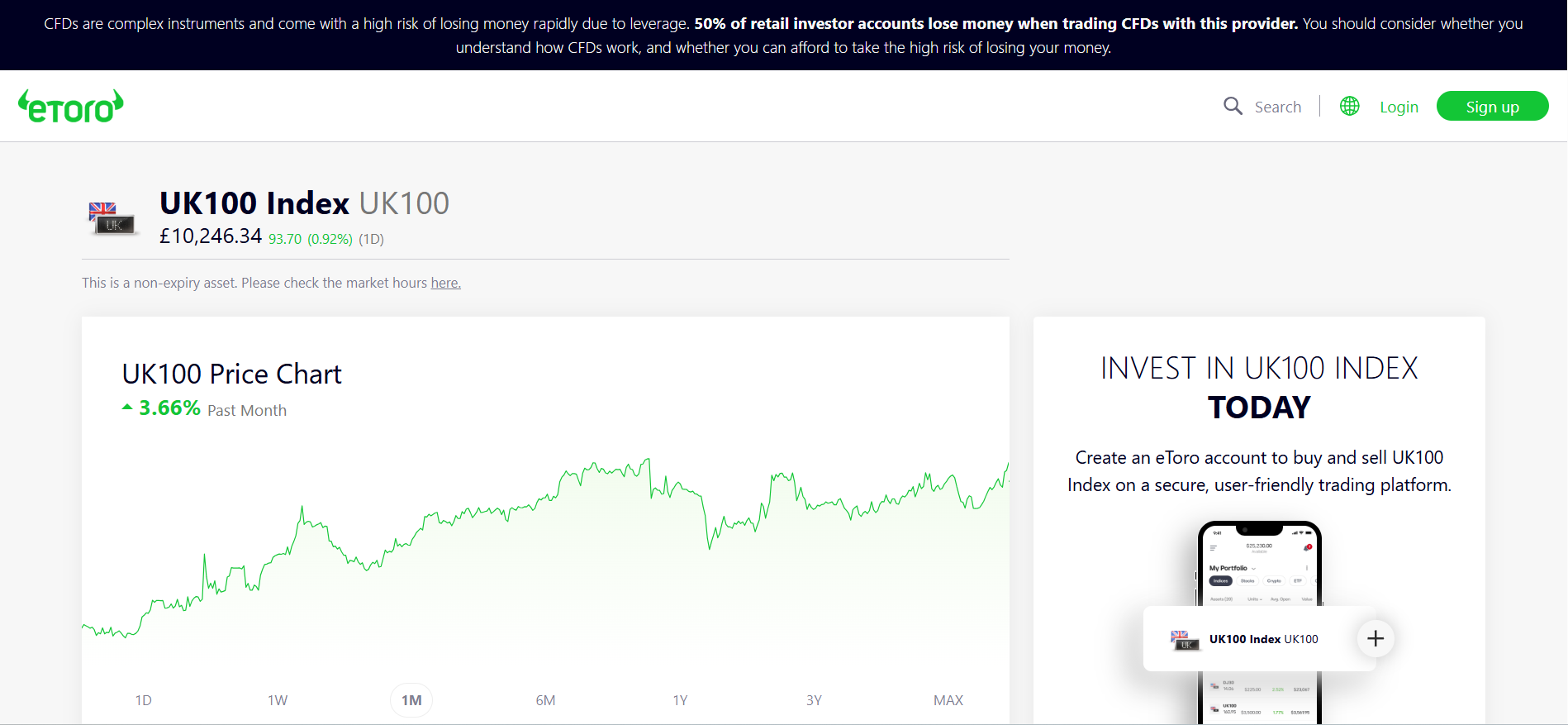 Traders using FTSE 100 are likely to find eToro very appealing especially those new into investing. The platform is easy to use with social trading features thus fostering engagement among users.