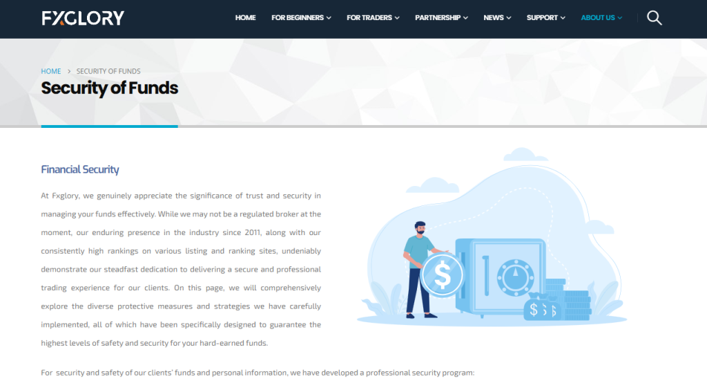 Traders recognize FXGlory for its strong dedication to safeguarding funds. Operating since 2011 without formal regulation, the broker maintains segregated client accounts, applies 256-bit SSL encryption, and partners with reputable financial institutions, demonstrating a serious commitment to secure trading environments and fund protection.