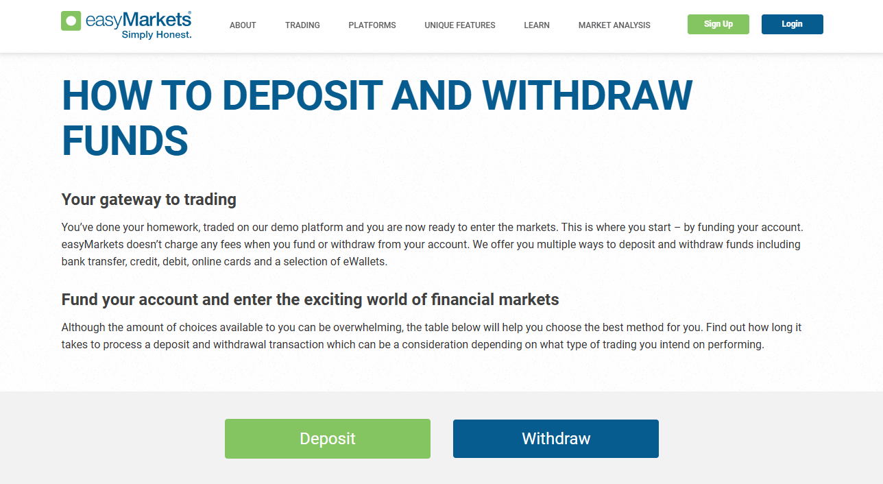 easyMarkets styður margar fjármögnunaraðferðir, þar á meðal bankaflytninga, kredit- og debetkort, netkort og úrval af eWallets. Þessi fjölbreytni tryggir að kaupmenn frá mismunandi svæðum geti fundið aðferð sem hentar þeirra þörfum auðveldlega og hratt.