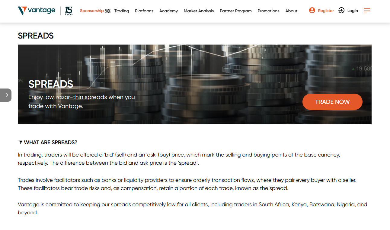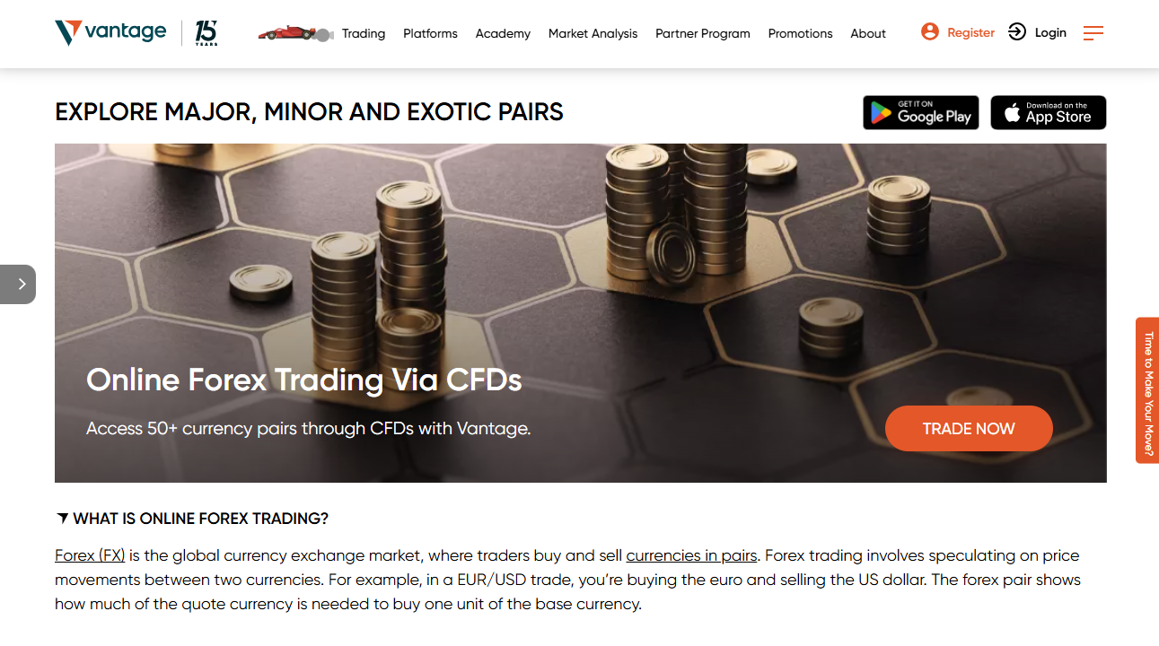 Vantage는 외환, 지수, 상품, 주식, ETF 등 1,000개 이상의 상품에 접근할 수 있는 전 세계적으로 신뢰받는 CFD 브로커입니다. MetaTrader 4, MetaTrader 5 및 모바일 앱과 같은 강력한 플랫폼을 통해 Vantage는 거래자에게 낮은 스프레드, 깊은 유동성 및 투명한 조건을 제공합니다.