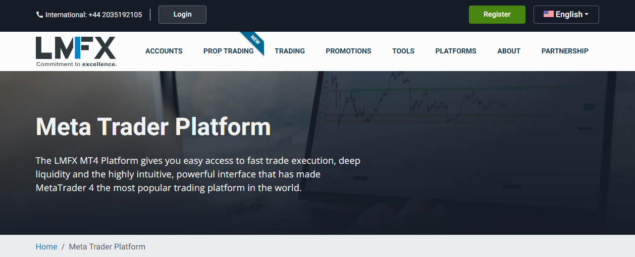 LMFX delivers the MetaTrader 4 platform with fast execution, deep liquidity, and low-latency performance. Moreover, the platform supports advanced charting, automated trading, and multi-device access, allowing traders to analyze markets, manage risk, and execute strategies efficiently on desktop and mobile environments.