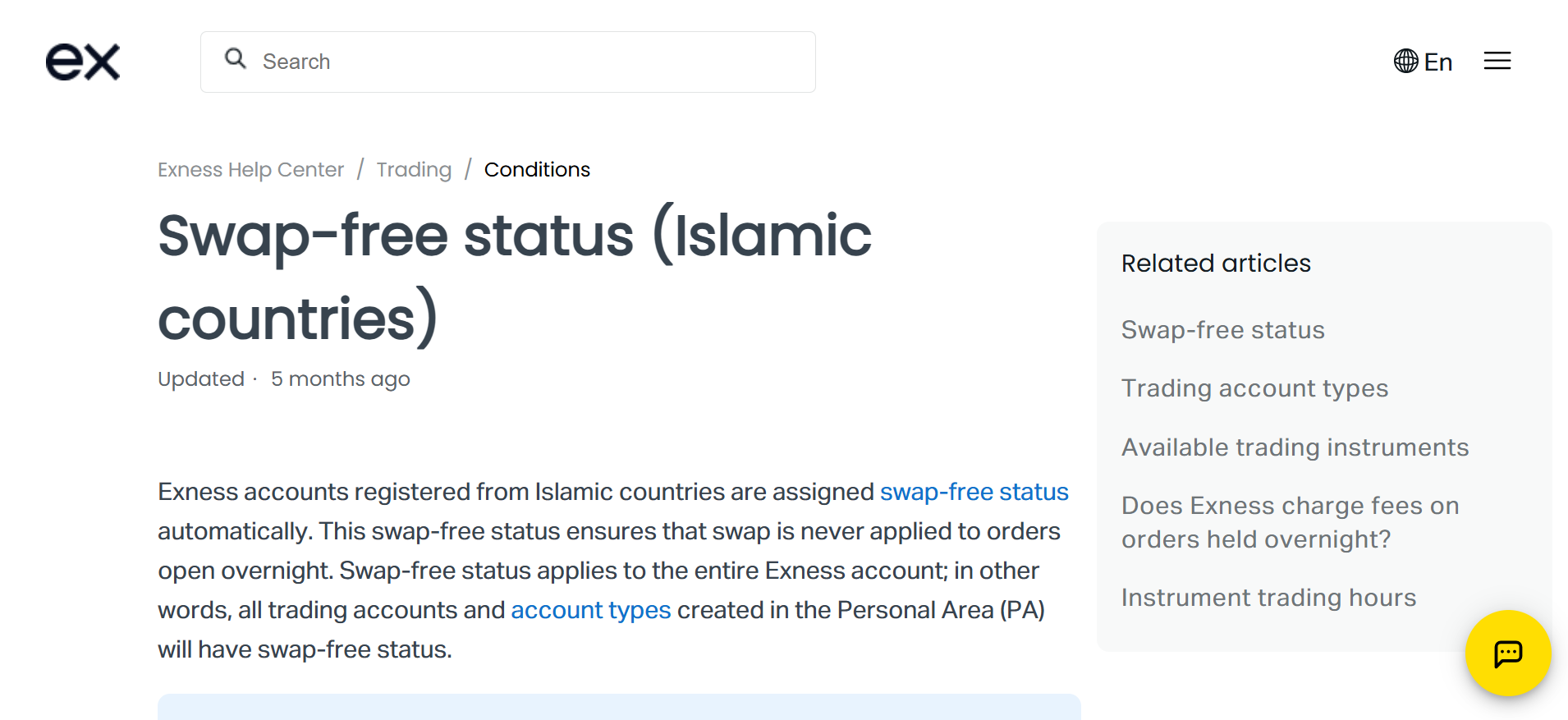 Does Exness offer swap free (Islamic) accounts?